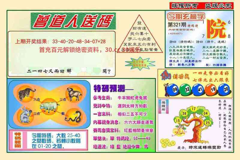 | 321期 | 猪猴狗羊兔牛龙 | 羊23准 |